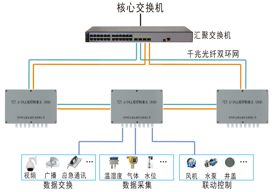 實現與現場視頻攝像機、工業電話和工業AP等設備的數據交換和管理;
