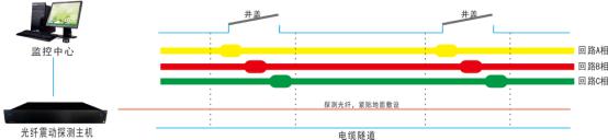 電纜隧道屬于地下隱蔽設(shè)備,常常由于市政建設(shè)需要,大型機械會在電纜隧道周邊持續(xù)、頻繁的施工,對電纜隧道結(jié)構(gòu)造成極大的影響,嚴重時還會導(dǎo)導(dǎo)致地表坍塌等重大事故。針對第三方破壞導(dǎo)致電纜隧道結(jié)構(gòu)損壞的現(xiàn)象,可通過電纜隧道防外破監(jiān)測系統(tǒng)對地下設(shè)施周邊一定范圍內(nèi)的土壤振動信息進行連續(xù)監(jiān)測和分析,從而實現(xiàn)地下電纜隧道安全預(yù)警,有效防止第三方破壞。