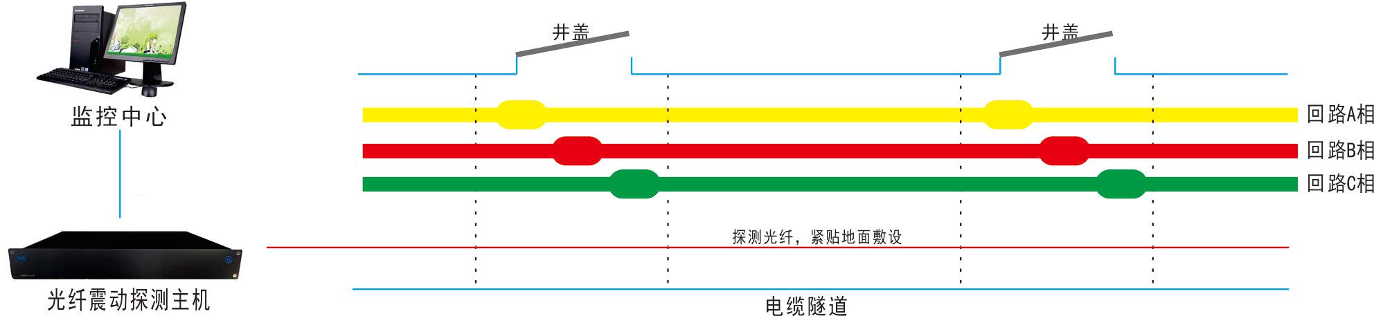 電纜隧道屬于地下隱蔽設備,常常由于市政建設需要,大型機械會在電纜隧道周邊持續、頻繁的施工,對電纜隧道結構造成極大的影響,嚴重時還會導致地表坍塌等重大事故。針對第三方破壞導致電纜隧道結構損壞的現象,可通過電纜隧道防外破監測系統對地下設施周邊一定范圍內的土壤振動信息進行連續監測和分析,從而實現地下電纜隧道安全預警,有效防止第三方破壞。