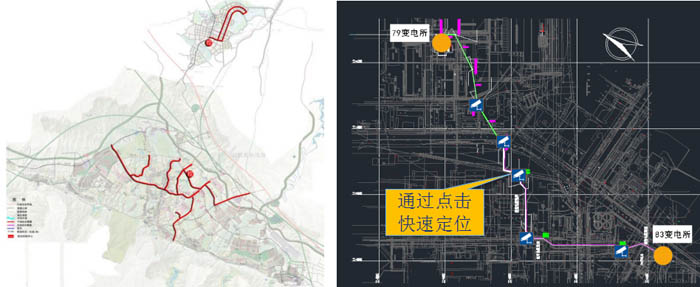 快速檢索定位:根據主/支管廊名稱、專業圖名稱、道路名稱等完成檢索定位。