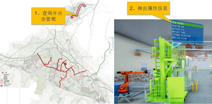 管廊查詢:可對任意位置的主/支管廊進行屬性查詢、條件組合查詢、圖形到屬性和屬性到圖形的查詢等。